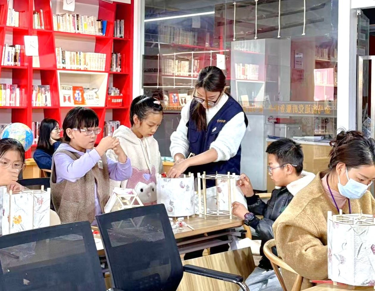 11月9日,国际语言文化学院在昆明市官渡区金马街道凤凰山社区举办四点钟学堂“捡秋与自然”社区志愿服务活动。志愿者们通过生动的图片为孩子们讲解秋季植物的特征、叶片分类等知识,以互动的方式引导他们学习与秋日相关的英文单词。在手工环节,志愿者们手把手地教孩子们用枫叶、银杏叶等材料制作花灯。