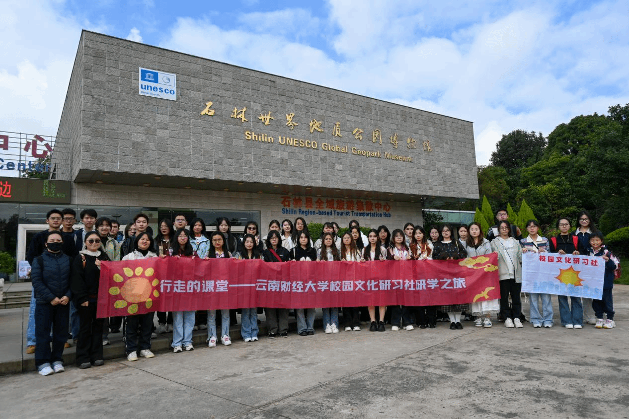 11月15日,校园文化研习社的同学们前往石林世界地质公园博物馆参观学习。在石得利地质博物馆与大小石林景区,实地了解地质学专业知识,现场观摩专业讲解员的讲解以提升校园文化讲解能力。