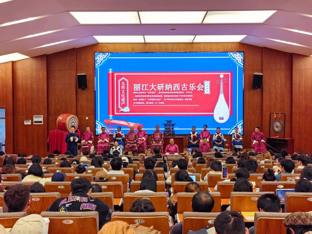 11月12日,纳西古乐赏析活动在安宁校区鹏云一教学楼101报告厅举办。丽江大研纳西古乐会应邀到校,为师生呈现了一场展现纳西艺术魅力的音乐盛宴。