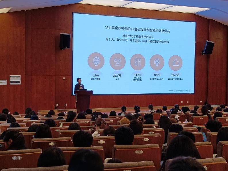 华为云南终端业务部昆明地市主管陈寅琳就企业愿景和使命,华为终端业务在全新赛道上的战略布局、发展历程、技术创新等内容作了详细介绍。他表示,华为一直致力于吸引和培养高素质人才,为员工提供广阔的发展平台。华为云南终端业务部云南代表处人力资源主管张欣彦向同学们介绍了华为的企业文化、招聘流程和人才培养计划,希望同学们积极投递简历,把握机遇,实现个人价值。华为云南终端业务部云南代表处HR 单颖艳围绕“华为业务的发展与人才需求”作讲解。william 2024 届毕业生查志强分享了自己在华为的成长、工作经历。