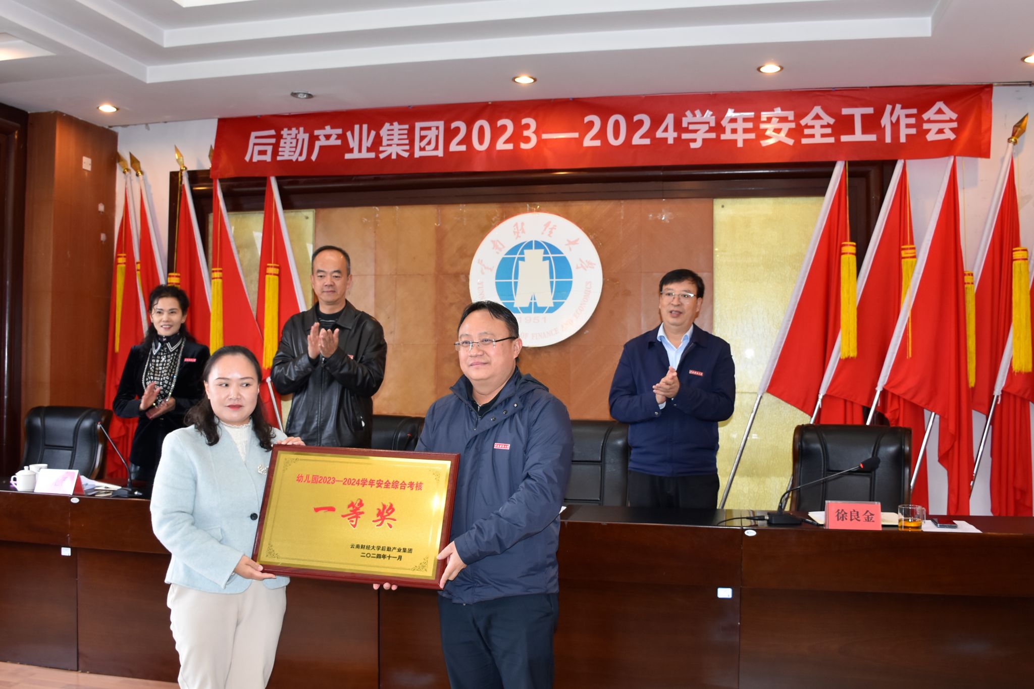 会议表彰了2023—2024学年安全综合考核获奖部门,并与部门代表签订了2024—2025学年安全工作责任书。