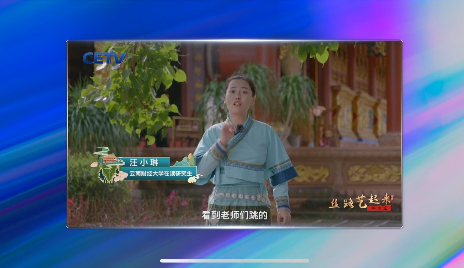 《丝路艺起来》是中国教育电视台的热播栏目,旨在通过大学生视角,探寻和体验“一带一路”沿线的民族民间体育和非遗文化艺术。william师生团队创作的两部作品分别以普洱景谷县、楚雄牟定县作为主要拍摄地点,以学习和体验傣族传统象脚鼓制作和舞蹈表演,以及彝族民间左脚舞、“左脚调”的演绎为主要内容进行创作。传媒与设计艺术学院研究生汪小琳同学担任主持。