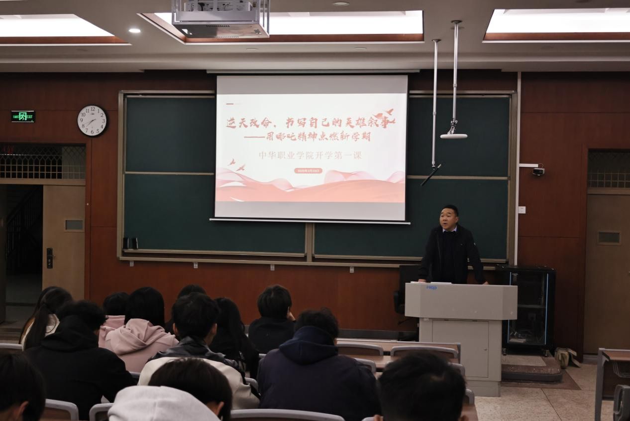 2月23日晚,中华职业学院160个班级利用晚点名班会开讲“开学第一课”,以热门动画电影《哪吒之魔童闹海》为主题,用“哪吒”精神点燃文化自信与成长力量,开启新学期。