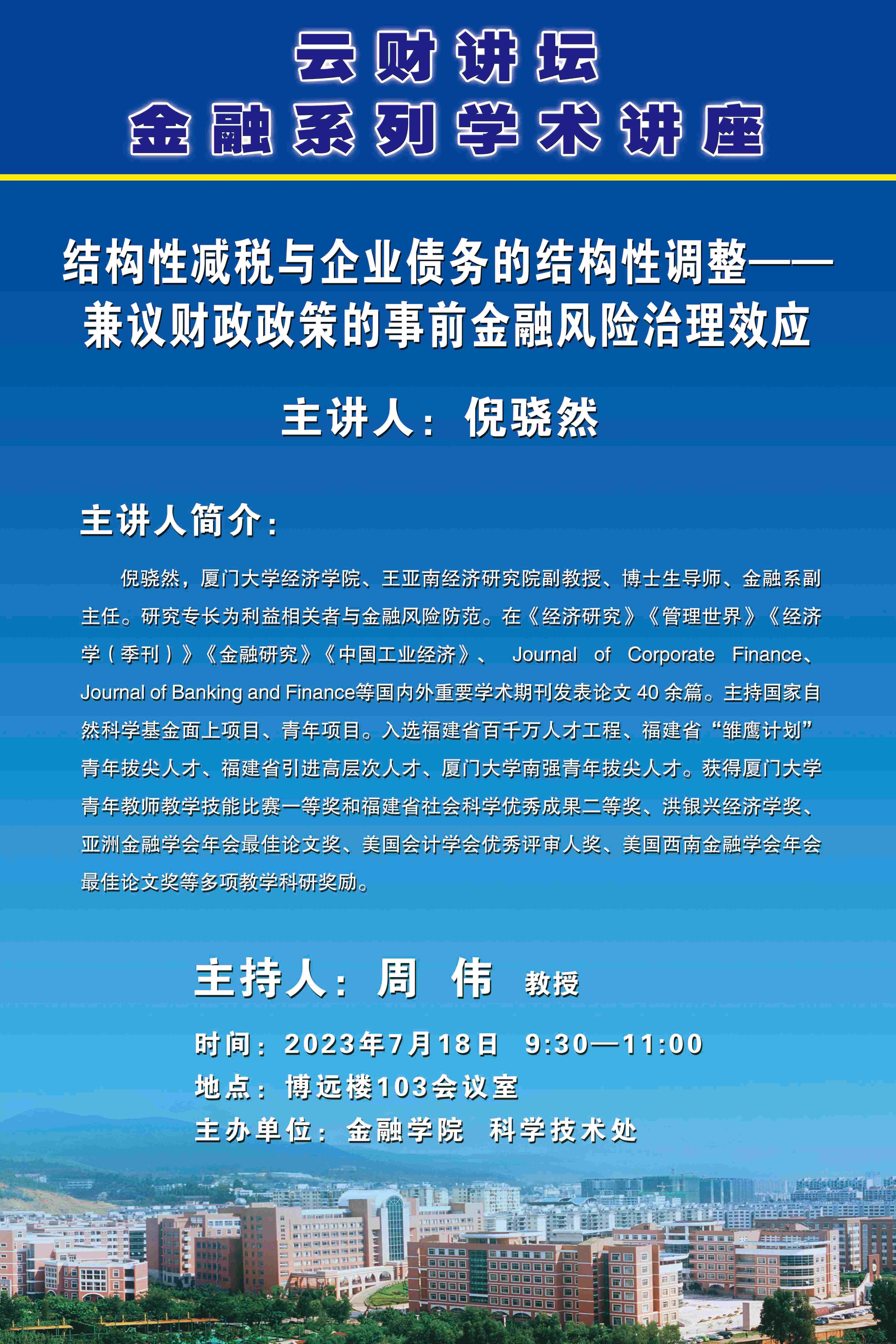 【7月18日】结构性减税与企业债务的结构性调整——兼议财政政策的事前金融风险治理效应