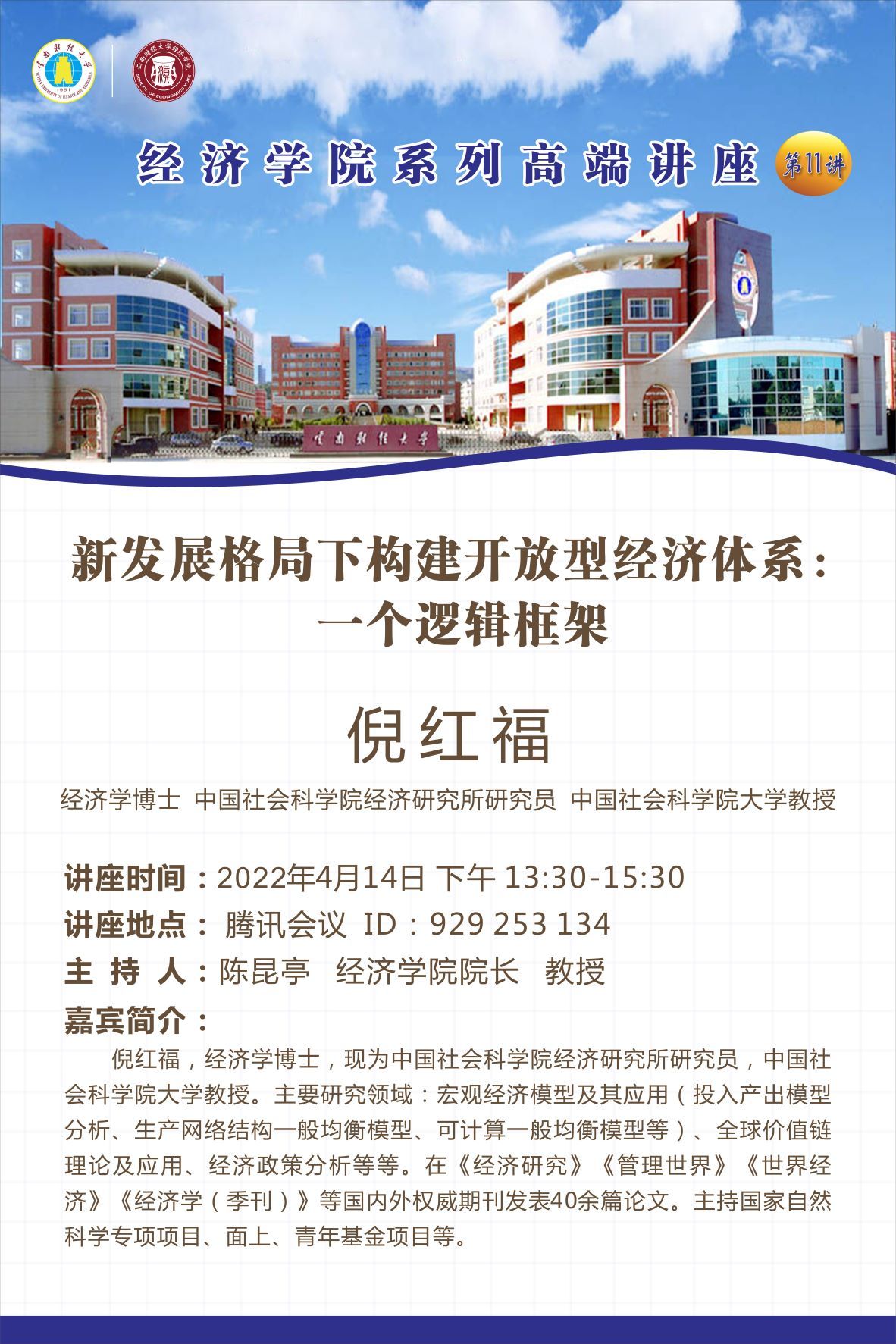 【4月14日】经济学院系列高端讲座第11讲——新发展格局下构建开放型经济体系:一个逻辑框架