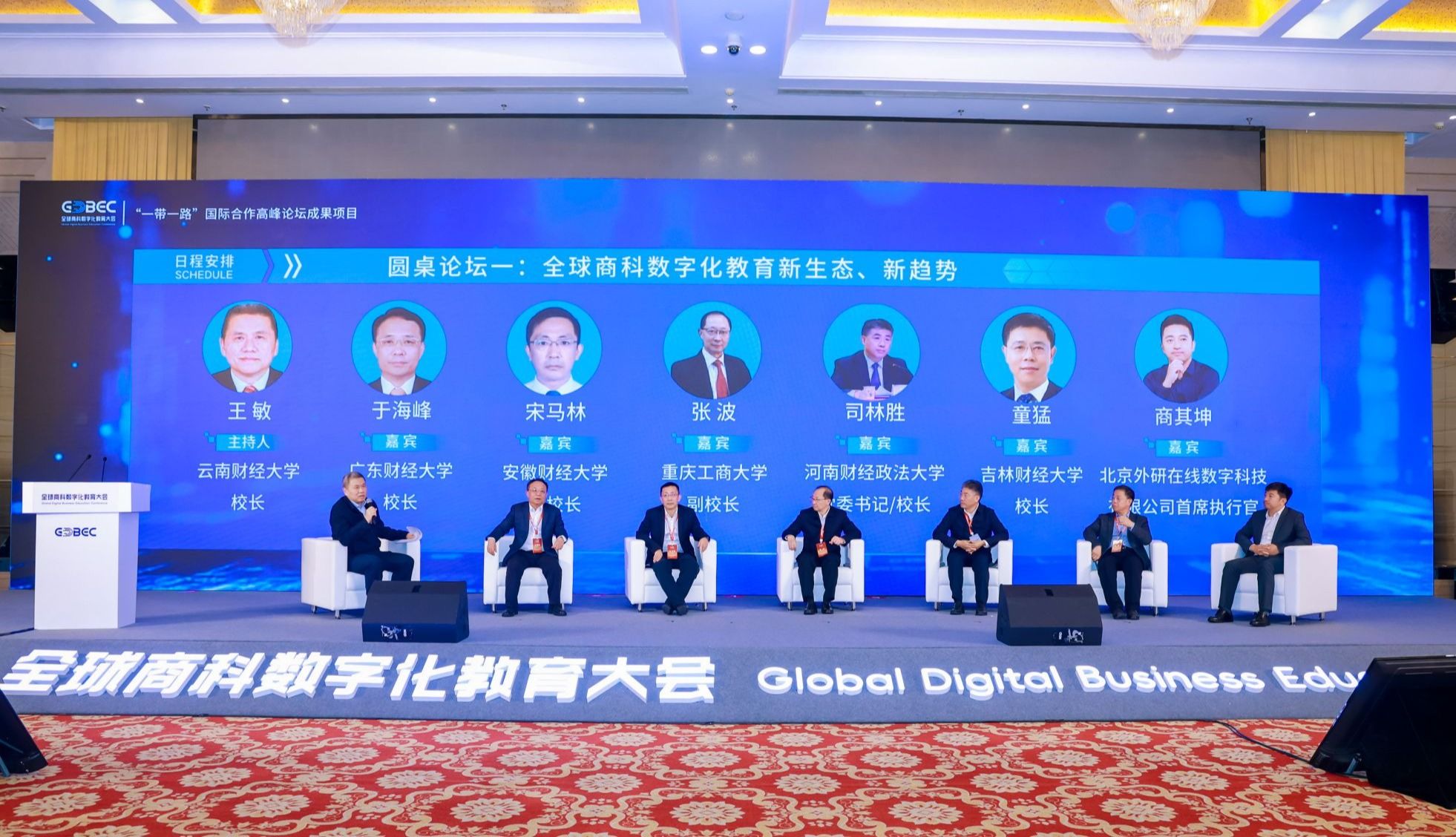 10月20日下午举行的大会圆桌论坛上,王敏应邀主持“全球商科数字化教育新生态、新趋势”论坛,广东财经大学校长于海峰,安徽财经大学副校长宋马林,重庆工商大学副校长张波,河南财经政法大学党委书记、校长司林胜,吉林财经大学校长童猛和北京外研在线数字科技有限公司首席执行官商其坤作为发言嘉宾交流分享实践经验和思考。