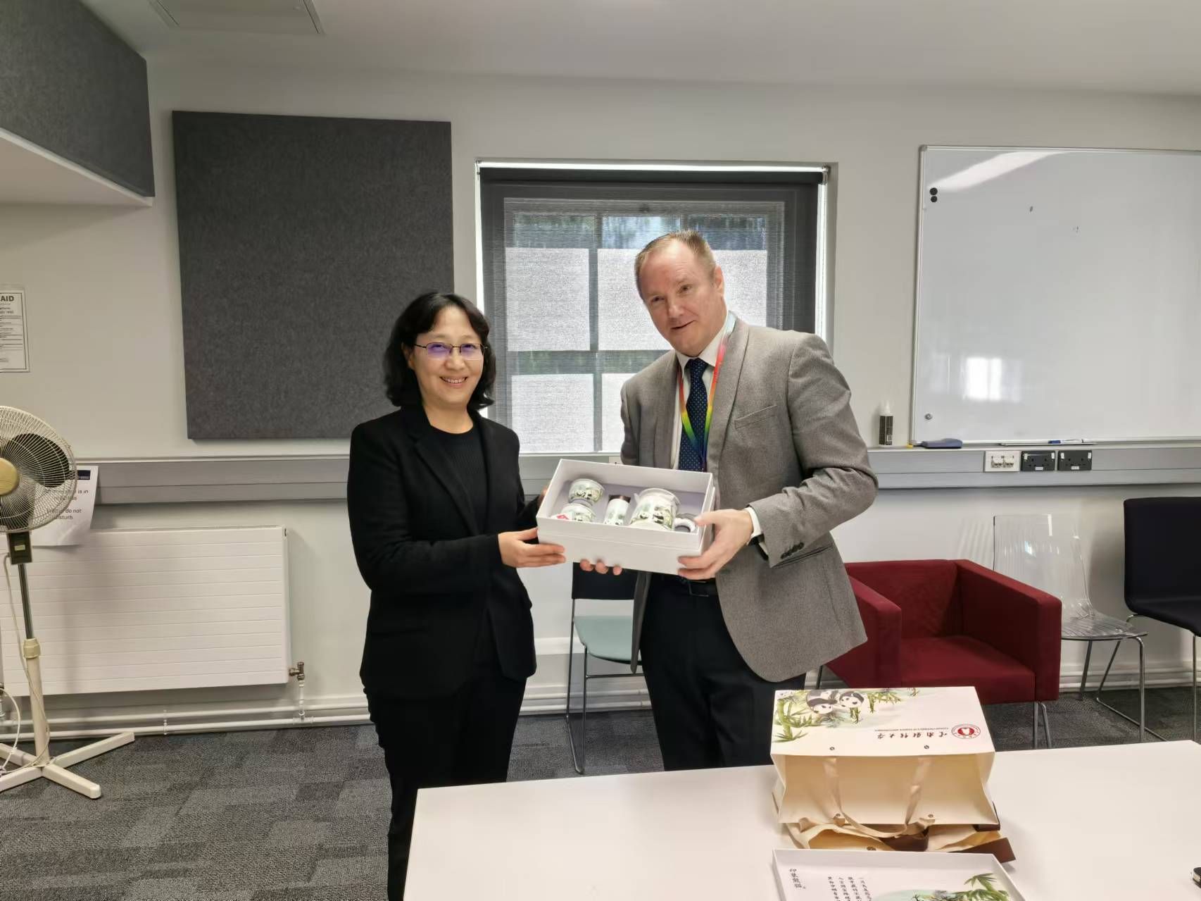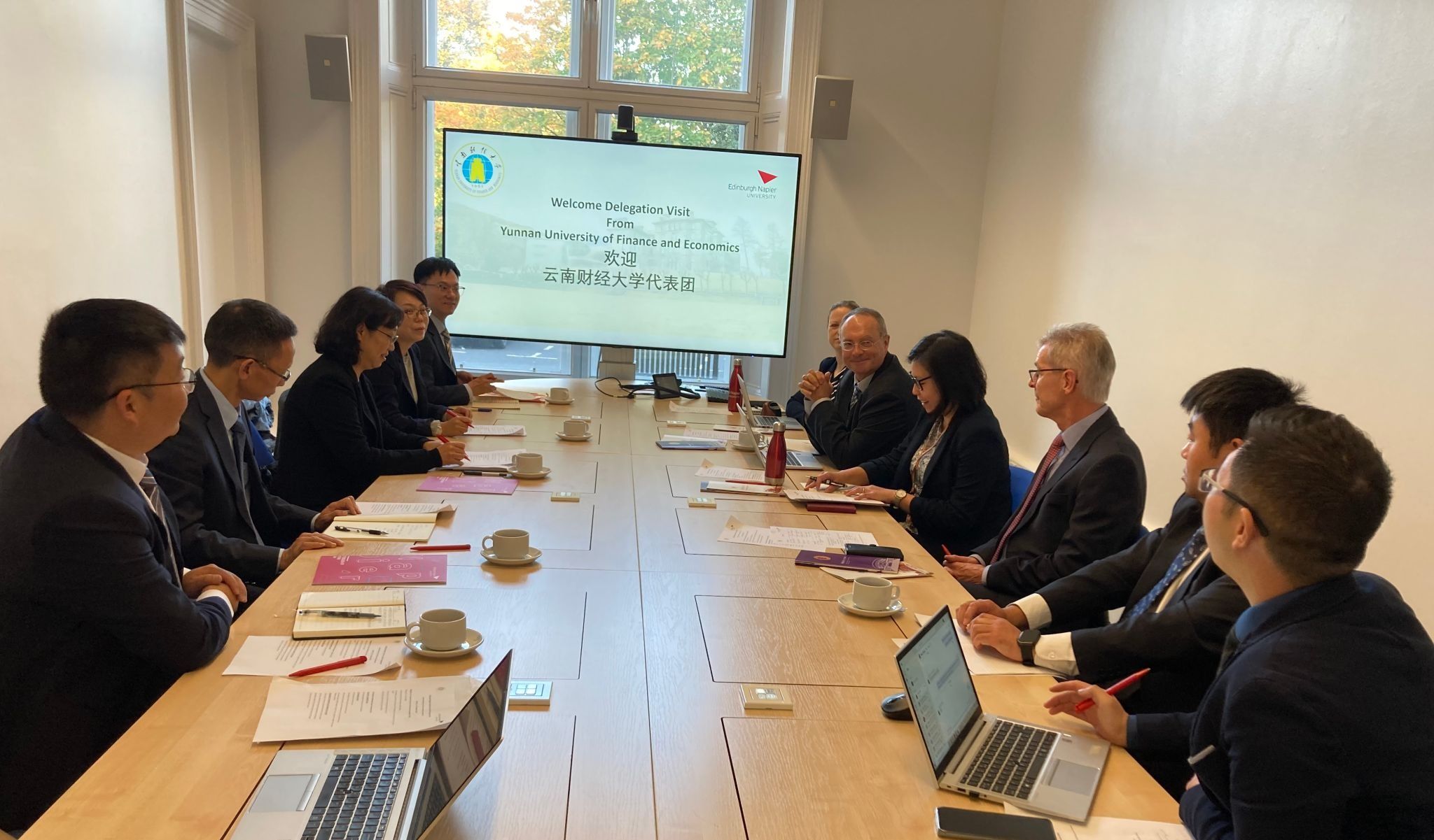 在英国爱丁堡龙比亚大学,代表团与龙比亚大学校长安德莉亚·诺兰等进行了深入交流,双方充分肯定了中英合作举办的金融学本科项目12年来取得的成效,就课程设置、教学模式优化等具体问题进行商讨,同时就合作举办新的本科项目、联合培养博士研究生项目、中方教师赴龙比亚大学交流学习等进行了讨论,双方一致同意在现有合作基础上进一步细化对接具体内容。同时龙比亚大学还邀请学校参与承办2025年“金融可持续发展”国际会议。