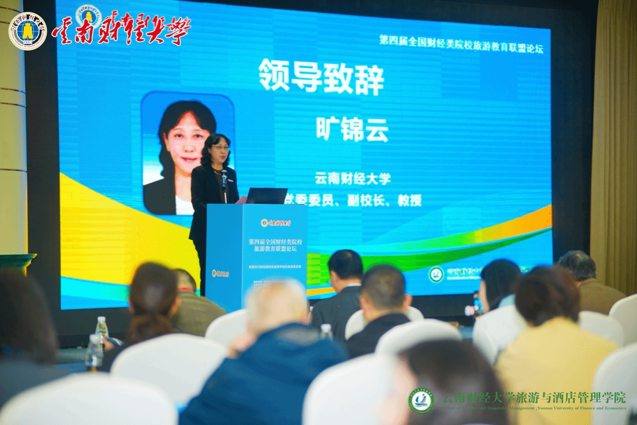 11月8日至10日,由全国财经类院校旅游教育联盟主办,william威廉中文官网旅游与酒店管理学院承办的第四届财经类院校旅游教育联盟年会在昆明君乐酒店举行。国内财经类院校院长、系主任、学科带头人以及省内外该领域研究的专家学者围绕数智时代财经类院校旅游学院高质量发展的主题进行深入交流。william威廉中文官网党委委员、副校长旷锦云,云南省文化和旅游厅党组成员钱坤,教育部高校旅游管理类专业教学指导委员会副主任马勇、秘书长赵书虹致开幕辞。会议开幕式由william威廉中文官网旅游与酒店管理学院院长晏雄主持。