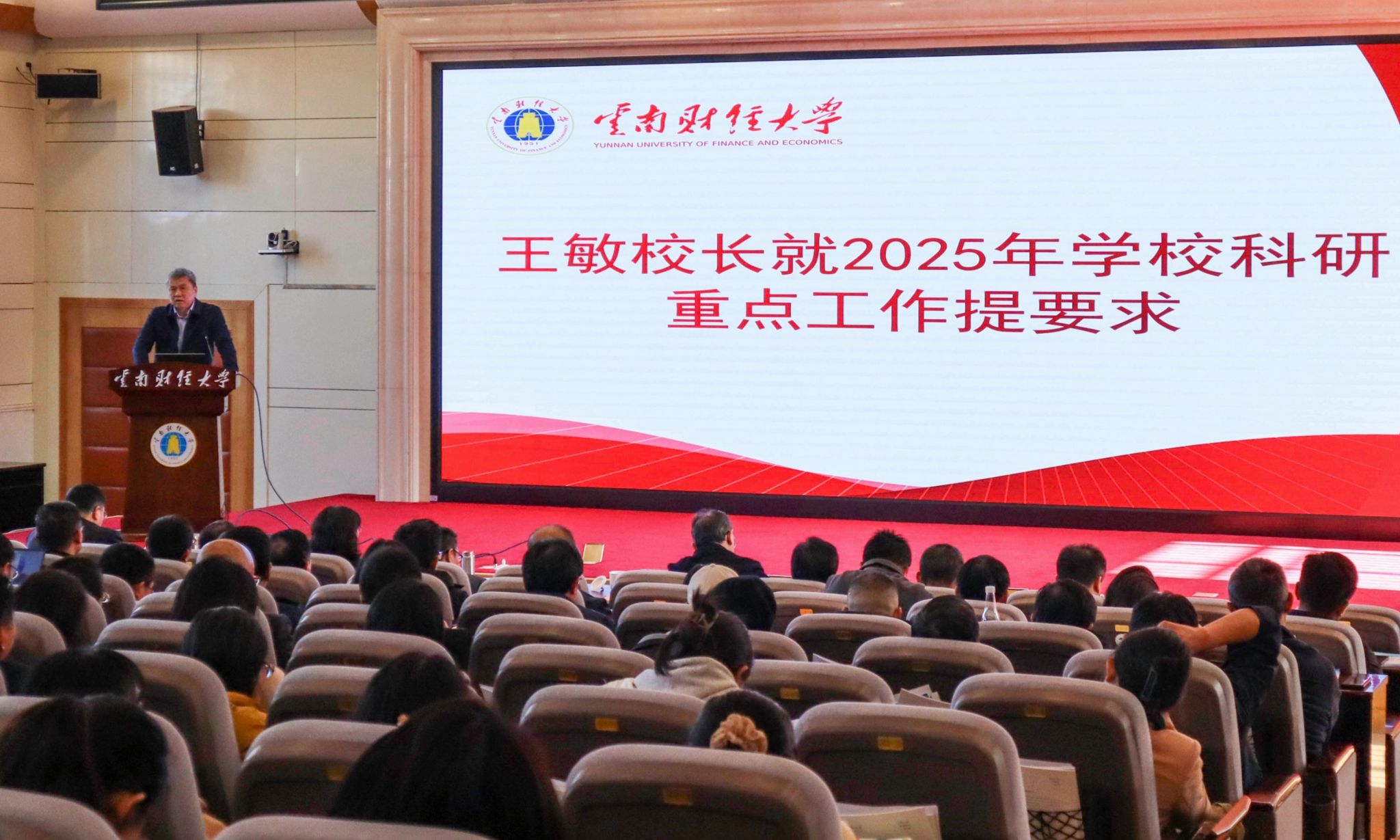 为切实提升科研实力,稳步推进高水平财经大学建设,12月27日,学校召开2024年度科研工作大会。校党委书记陈红总结讲话,校党委副书记、校长王敏就2025年科研重点工作提出要求,校党委委员、副校长李正彪主持会议。