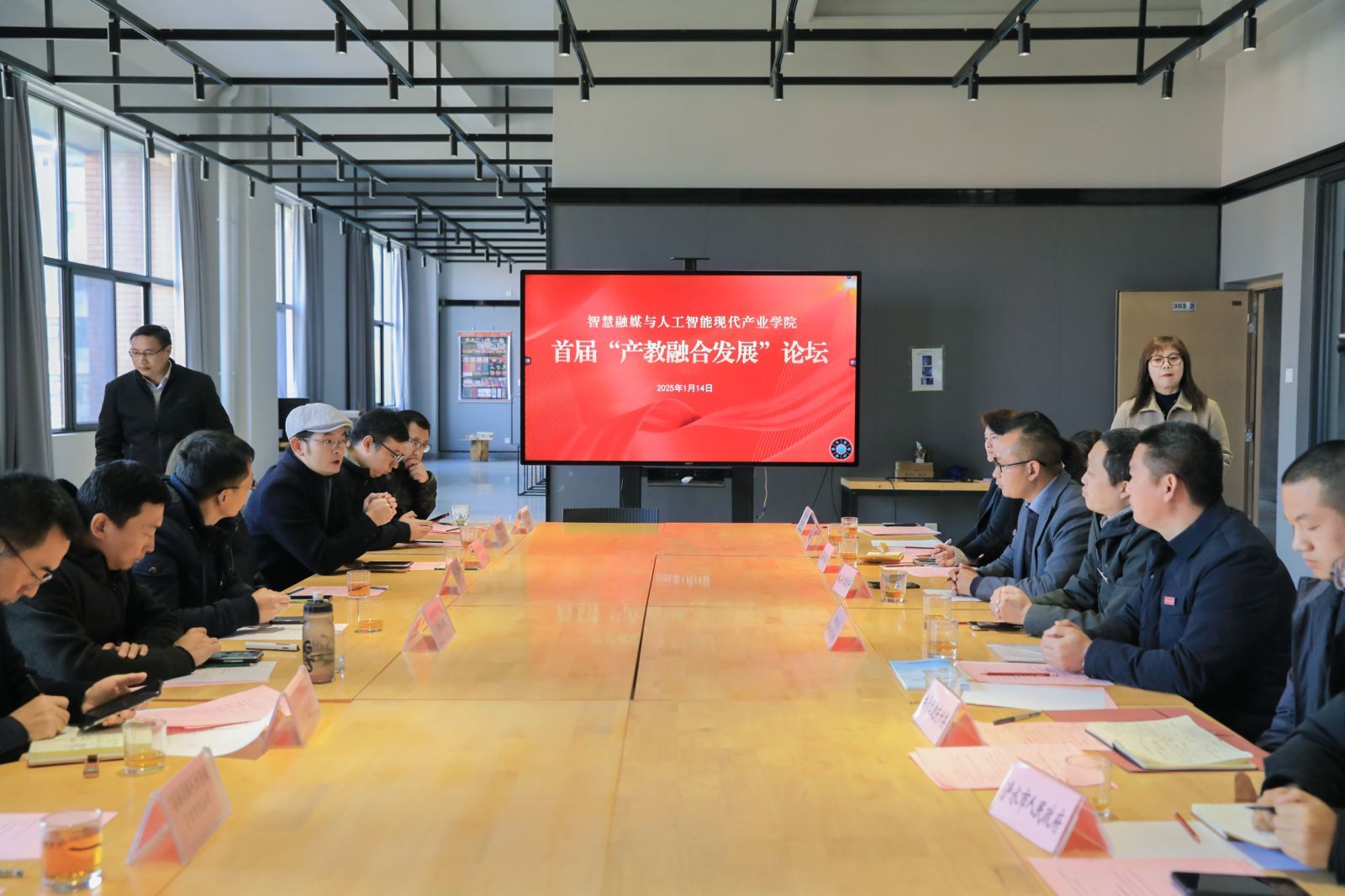 仪式结束后举行了智慧融媒与人工智能现代产业学院首届“产教融合发展”论坛。论坛聚焦产教融合的发展趋势与实践路径,邀请了来自高校、企业和政府的专家学者进行主题演讲和圆桌讨论,分享各自在产教融合方面的经验和见解,探讨如何更好地实现教育资源与产业需求的有效对接,以及如何通过技术创新和教育改革来支持区域经济和社会的发展。