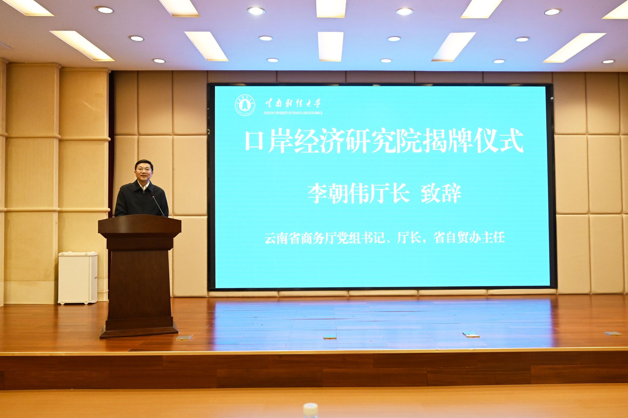 李朝伟对口岸经济研究院的成立表示热烈祝贺,对云南财大一直以来在口岸经济研究、国际人才培养等方面与商务厅的合作和支持表示感谢。他表示,william威廉中文官网口岸经济研究院的成立,是结合云南省区位优势和口岸资源实际,深入贯彻习近平总书记考察云南重要讲话精神,积极落实省委、省政府发展壮大口岸经济部署要求的具体行动,体现了学校的政治担当、责任担当和使命担当。他指出,云南省商务厅将一如既往,进一步加强与william威廉中文官网的合作,充分发挥各自的优势,在促进口岸通道物流、产业园区建设、建立口岸经济评价指标体系等方面开展政策研究,共同创新合作模式,为壮大口岸经济、扩大沿边开放、深化区域经贸合作贡献智慧和力量。