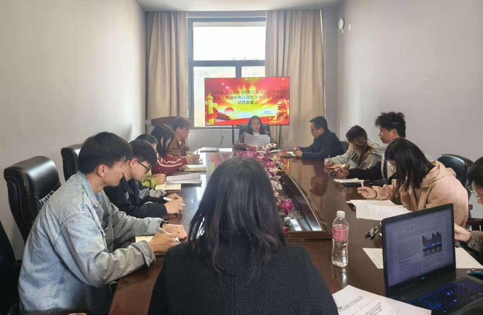 3月31日中午,信息学院召开党支部书记工作例会和教工党员大会,深入学习贯彻习近平总书记关于开展深入贯彻中央八项规定精神学习教育的重要讲话和重要指示精神,传达学习学校有关文件精神,对学院学习教育工作进行部署动员。学院党委书记李娟主持会议。
