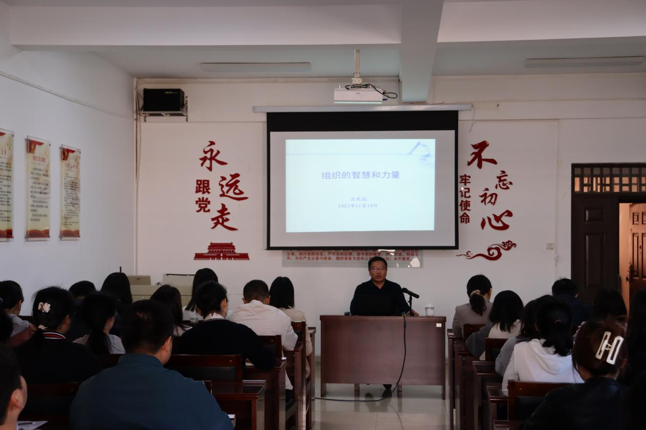 为进一步推动校领导联系二级学院党委、党支部工作走深走实,11月10日,校纪委书记、监察专员业光远以“组织的智慧与力量”为主题到法政学院作专题党课,学院党委领导班子、师生党员60余人参加学习。