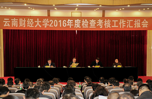 考核工作汇报会在国际学术报告厅召开。第一检查考核组由云南省委高校工委书记、省教育厅厅长周荣带队,云南大学党委副书记张昌山和云南民族大学纪委书记李毅担任组长。校党委书记郭五代作领导班子年度工作总结报告、党风廉政建设责任制和贯彻落实中央八项规定精神专题报告,汇报会由校长伏润民主持。