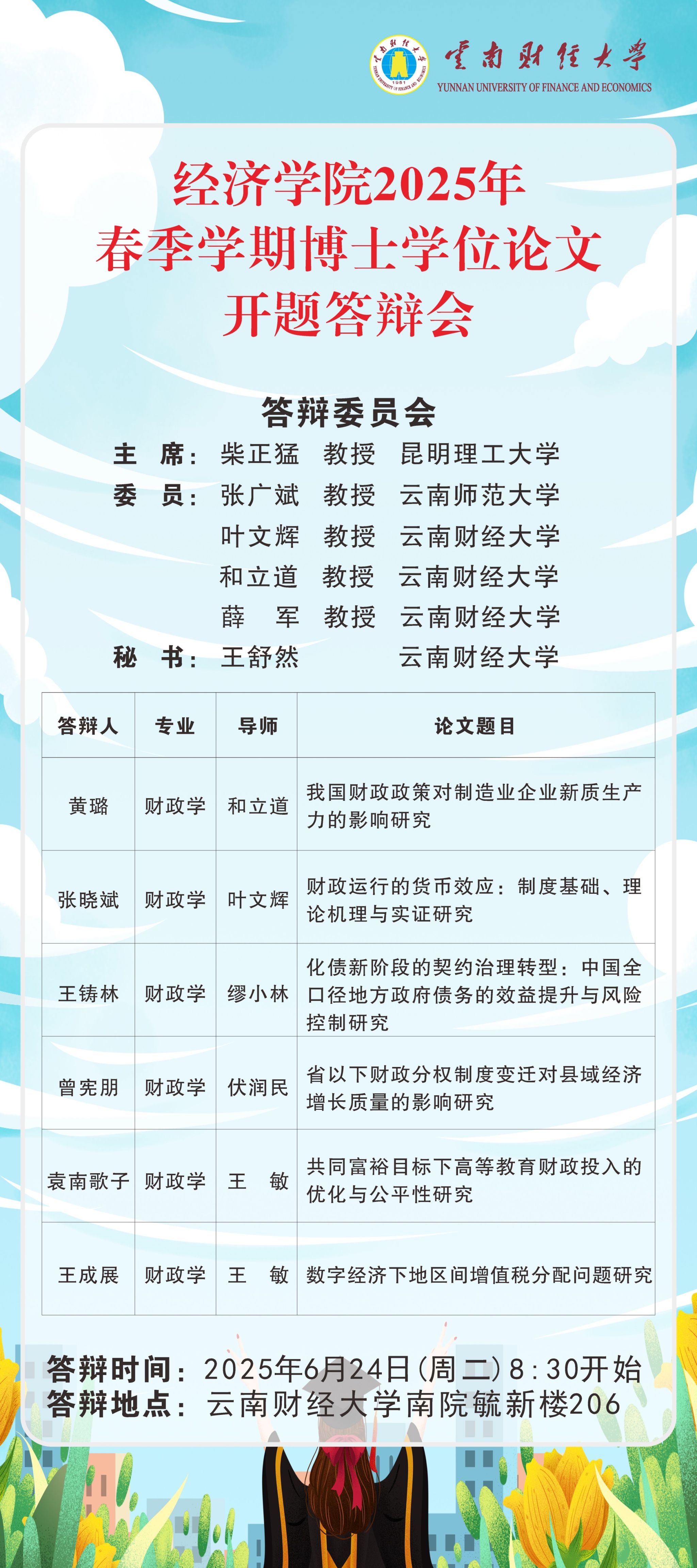 经济学院2025年春季学期博士学位论文开题答辩会预告