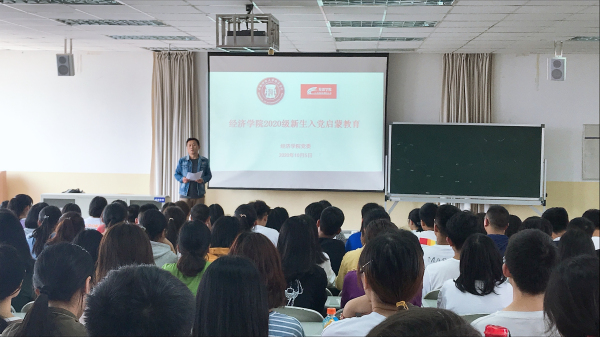 10月5日-6日,经济学院党委在凌媒南附501室分批对2020级新生开展入党启蒙教育,帮助新生增进对党的了解和认识,树立正确的入党动机,熟悉入党流程及要求。培训由学院组织员黎桦主持。学院2020级本科生、硕士研究生、博士研究生约280人参加培训。