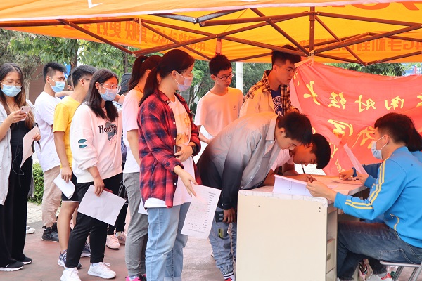 8:00活动正式开始,主要以长征史上的重要历史事件“强渡乌江”为主题,分别设立了四个环节。第一个环节——追根溯源,主要对长征的历史意义等进行了考察;第二个环节——乌江天险,主要对强渡乌江的细节如时间、地点、指挥官等进行考察;第三个环节——前仆后继,考察了发生于强渡乌江前后的重大历史事件;第四个环节——继往开来,通过问答题的形式询问参赛人员对这段历史的认识和从这段历史中学到了些什么。前来参赛同学络绎不绝,都按照工作人员指示有秩序的完成每一个关卡,即使中午烈阳高照,大家的热情依旧不减,在竞答桌前排起了长队。