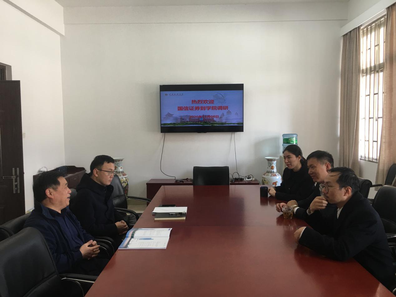 11月6日上午国信证券罗少屹一行来学院调研实践实习工作开展情况,商谈合作事宜。学院院长熊德平教授,副院长李江城教授参加了交流。