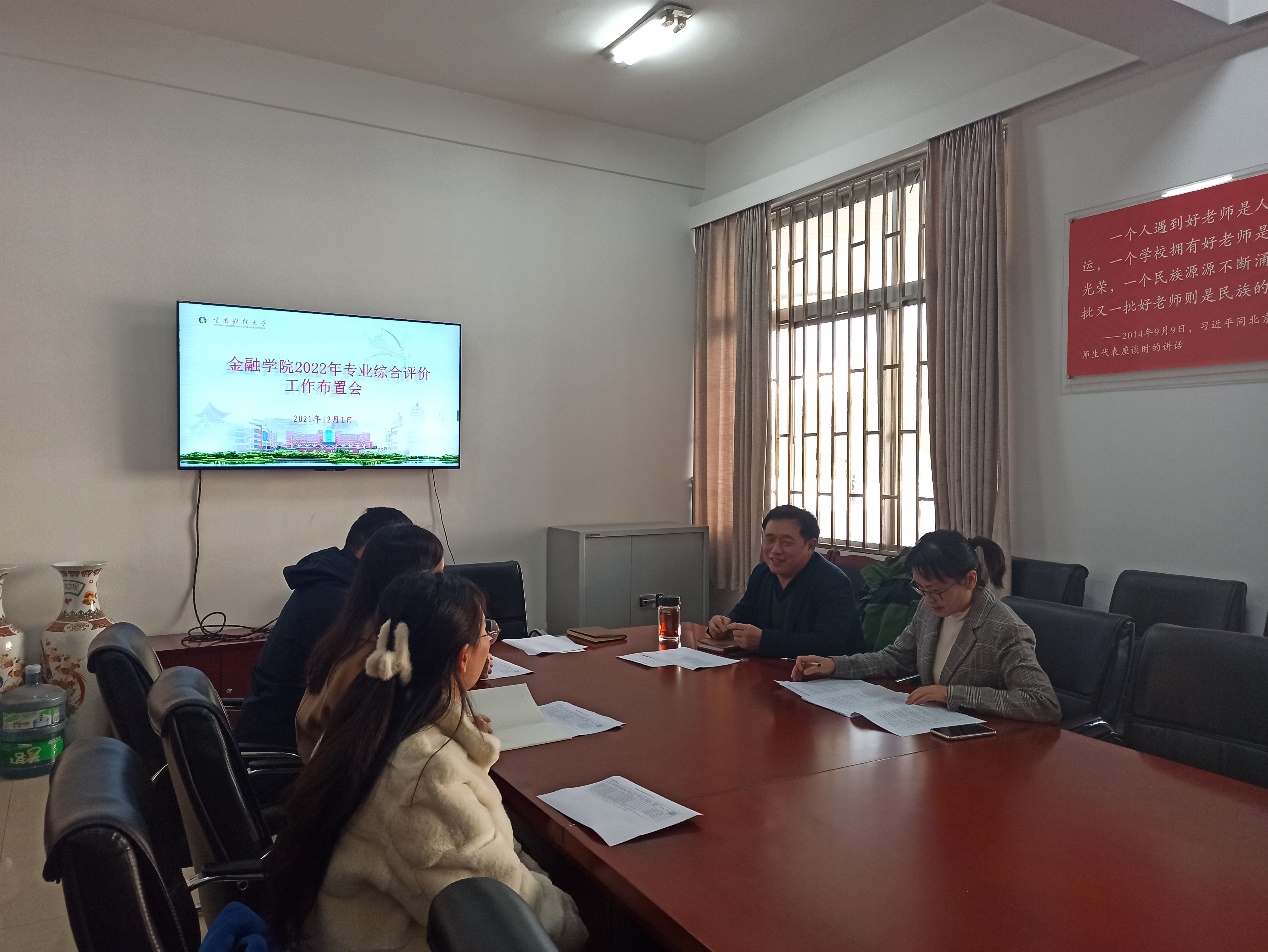 12月1日下午,金融学院在博远楼111会议室召开2022年专业综合评价工作布置会,学院领导、系主任、参评专业负责人、专业填报人、教务科老师参加了此次会议,会议由李江城副院长主持。
