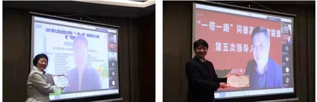 2021年12月5日下午,“一带一路”同德高校教育联盟第五次领导人会议在上海财大豪生酒店三楼柏林厅以线上线下相结合形式顺利召开。金融学院院长熊德平教授应邀线上出席,代表学院和获奖优秀个人领奖,并就“一带一路”建设全国高校学生征文暨同德夏令营活动创新发展做会议发言!
