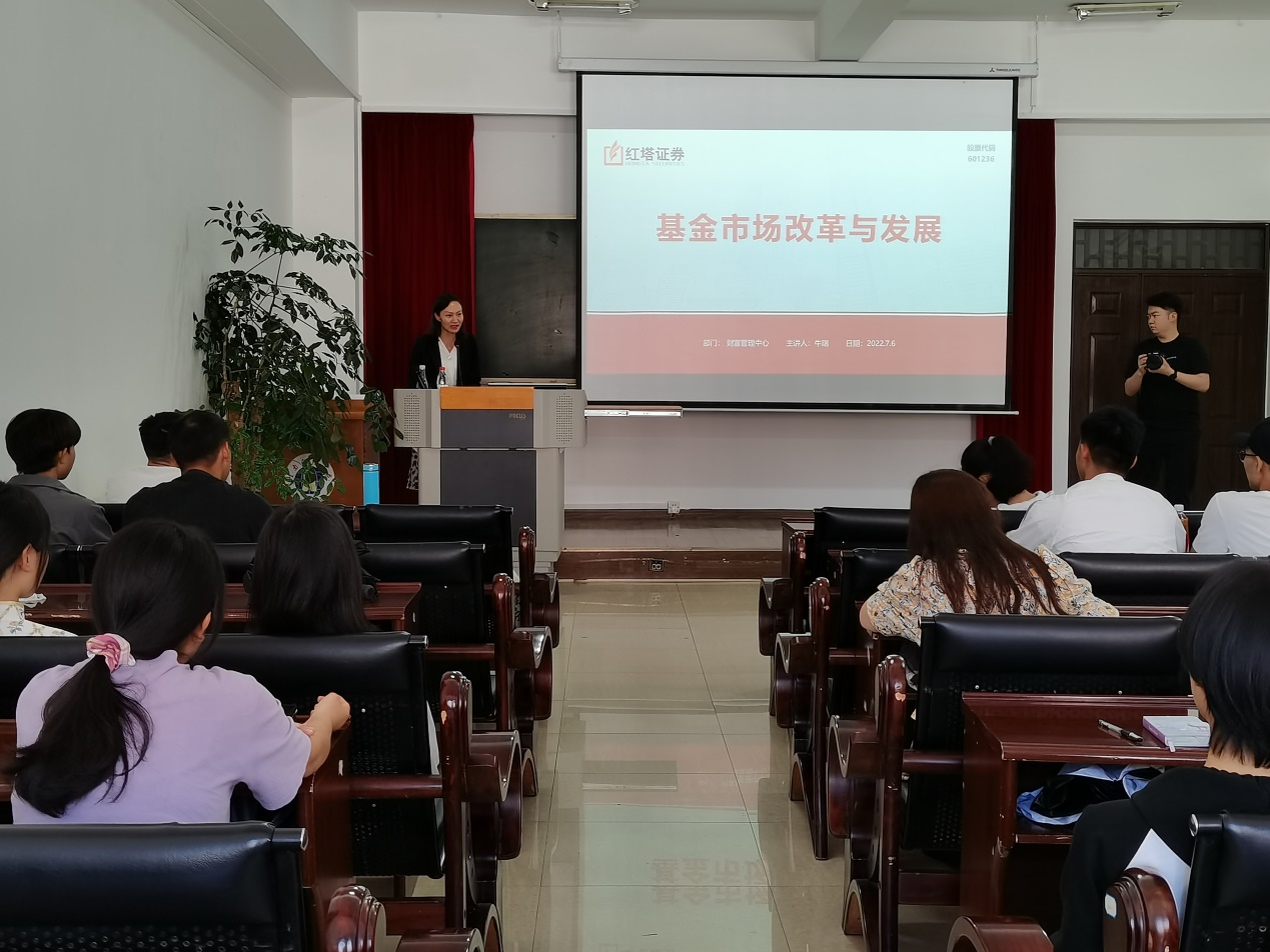 2022年7月6日下午,金融学院携手红塔证券举办了“证券市场前沿与实务”系列讲座第五讲:基金市场改革与发展。
