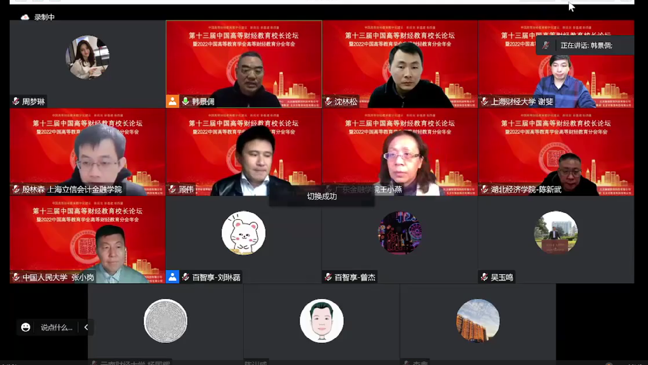 2022年12月17日,金融学院副院长杨国辉受邀参加第十三届中国高等财经教育校长论坛暨中国高等教育学会高等财经教育分会第18届年会,会议主题聚焦“中国高等财经教育数字化建设:新规划 新基建 新质量”,来自中国人民大学、中央财经大学、上海财经大学等知名高校的专家学者分享了“支撑财经教育高质量发展与数字化升级”、“面向双一流建设标准的财经教育与数智技术融合”、“教育数字化建设背景下新财经复合创新人才培养”等话题。杨国辉作为实验资源跨校共享分论坛代表作了“数字经济时代金融人才培养思考”发言,与参会专家交流了金融学院金融科技人才培养的差异化思考,主要聚焦数字普惠金融、跨境贸易区块链金融、产业链数字金融人才培养,得到了与会专家的充分肯定,并表示未来希望能与云财进一步合作,共同探索金融科技人才培养方式。