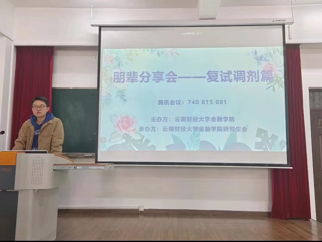 为进一步增加考研同学对金融学院复试流程及内容的认识,金融学院于3月10日下午2:30在博远楼103室举办了考研复试调剂分享会。学院邀请了2022级研究生作为本次分享会的主讲人与同学们进行交流,此次分享会由陈马兴同学主持,分享会通过线上和线下两种方式开展。