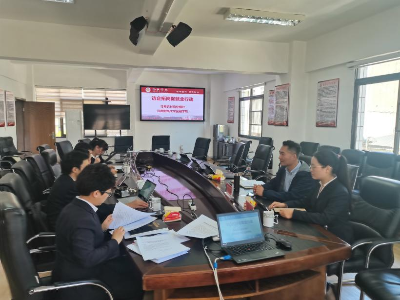 金融学院积极开展访企拓岗促就业行动,拓宽学生就业渠道,挖掘就业岗位。3月24日,金融学院副院长杨国辉代表学院拜访寻甸农村商业银行,与寻甸农村商业银行相关领导围绕近年农村金融机构的用人需求进行了座谈交流。