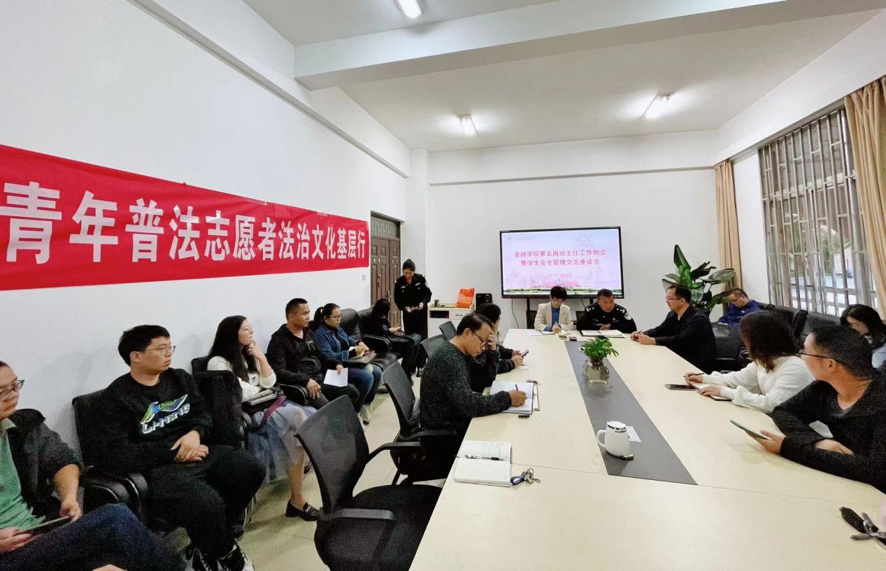 为进一步增强师生防诈反诈意识,提高辅导员和班主任对于学生事件的应急处置能力,10月22日,金融学院在博远楼115会议室召开学生安全管理交流座谈会。会议由金融学院党委副书记郭丽仙主持,马村派出所普劲松警官一行应邀参加。