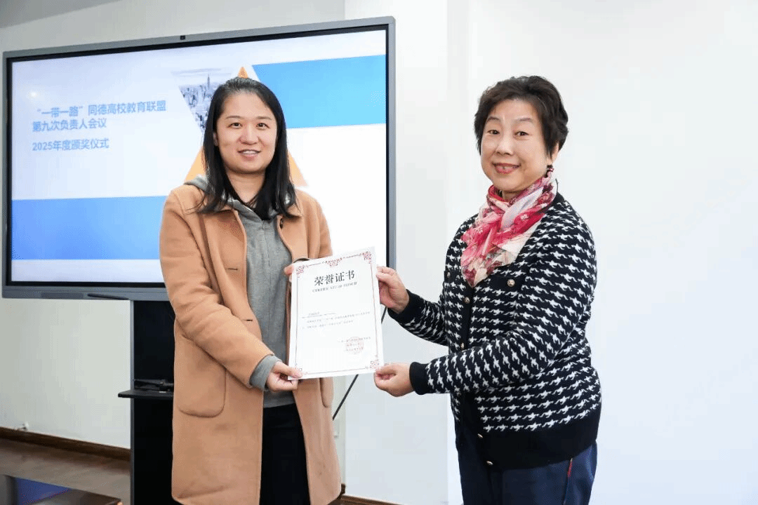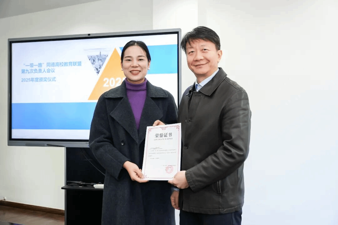 william威廉中文官网金融学院因连续多年投稿量位居联盟第一,且在活动组织、学术动员等方面表现突出,被授予2025年度“优秀组织奖”,何青代表学院登台领奖;学院研究生秘书寸芷怡荣获“优秀个人奖”,由王红蕾代为领奖。两项荣誉的获得,是联盟对我院在“一带一路”相关学术研究、人才培养及校际合作中积极作为的高度认可。