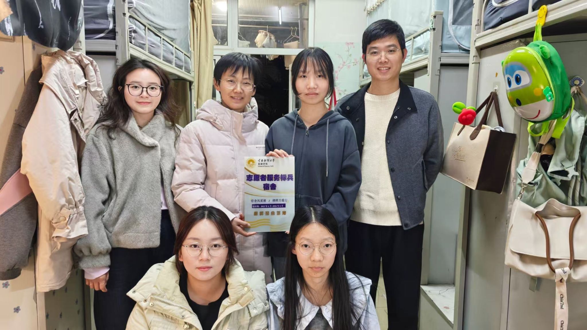 胡小珊在现场检查中强调,安全无小事,宿舍安全直接关乎每位同学的生命财产安全,请全体同学务必高度重视,营造安全有序的生活环境。周伟指出,宿舍不仅是同学们日常学习生活的重要场所,更是培养文明习惯的关键空间,希望同学们在抓好学习的同时共同维护宿舍的安全与整洁。郭丽仙对环境卫生整洁的宿舍给予肯定希望继续保持,并对现场检查中发现的问题提出整改要求。检查小组同时为申请“榜样宿舍”滚动培育并通过审查的宿舍进行挂牌。