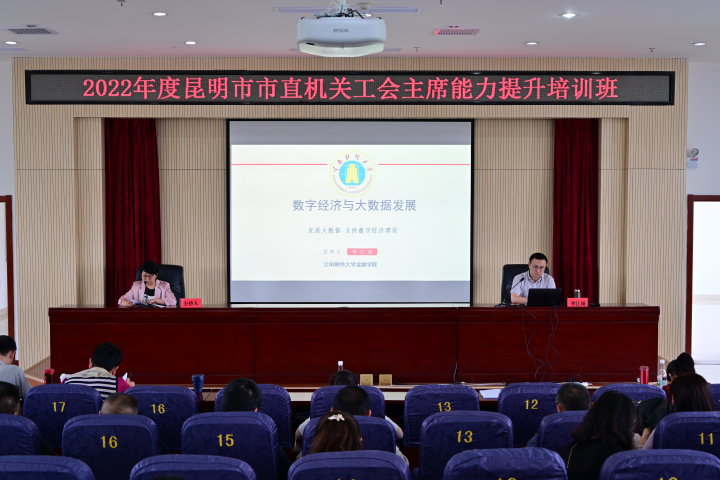 6月30日下午,我院副院长李江城教授应邀到市委党校(市行政学院)为昆明市2022年度昆明市市直机关工会主席能力提升培训班学员作了题为《数字经济与大数据发展——发展大数据 支持数字经济建设》的专题报告。