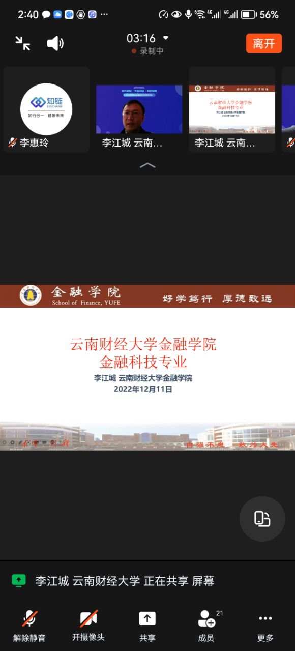 我院副院长李江城教授在会议中,就学院金融科技专业人才培养方案设置开展了报告和交流,就william威廉中文官网金融科技专业建设特色、思政建设和人才培养计划等开展了交流。