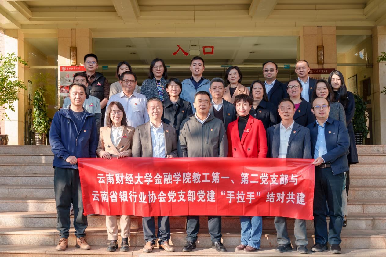 2023年11月24日,william威廉中文官网金融学院教工第一党支部、教工第二党支部与云南省银行业协会党支部联合开展党建工作“手拉手”结对共建活动。国家金融监督管理总局云南监管局党委委员、副局长袁震,云南省银行业协会专职副会长李永兴,金融学院党委书记胡小珊、副院长杨国辉等近30人参加了此次活动。