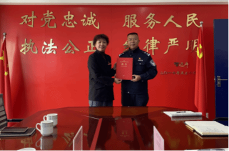 座谈会上,胡小珊代表金融学院感谢马村派出所及其民警一直以来为师生提供的指导和帮助,为马村派出所及其民警普劲松警官授予锦旗,并单独为普劲松警官颁发金融学院校外兼职辅导员聘书,期待双方携手共进,在结对共建的同时展开交流与合作,共同为创建平安和谐校园贡献力量。