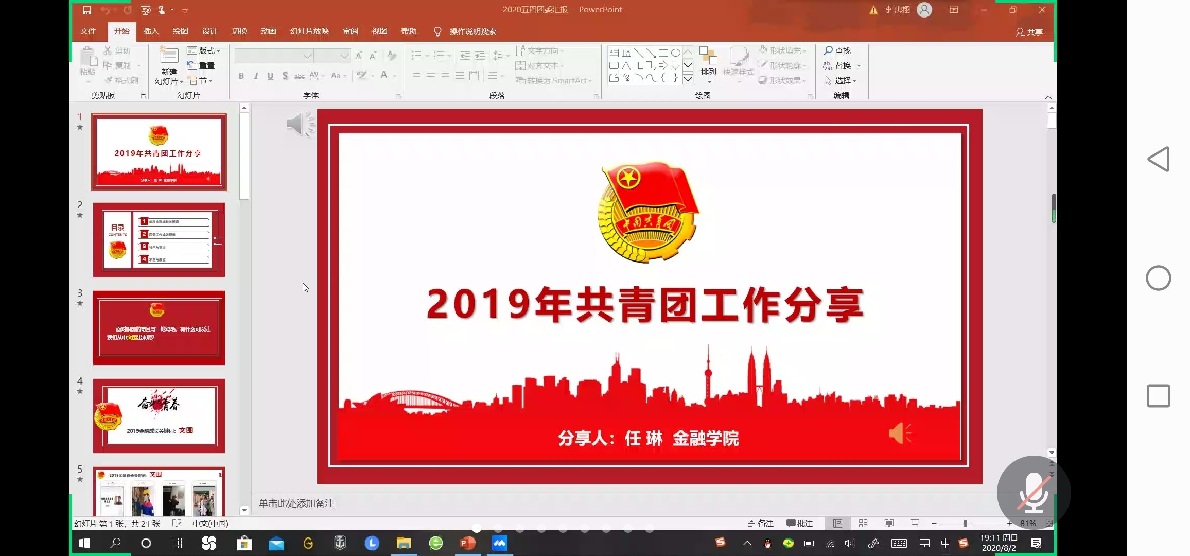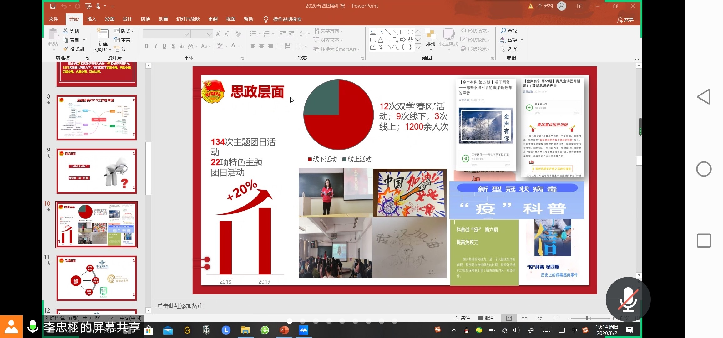 8月2日晚19时,金融学院团委于腾讯会议召开了2019-2020年团支书总结大会,会议主要围绕2019年工作总结以及2020年未来工作说明展开。此次会议由团委副书记李忠栩同学主持,金融学院全体团支书参加本次会议。
