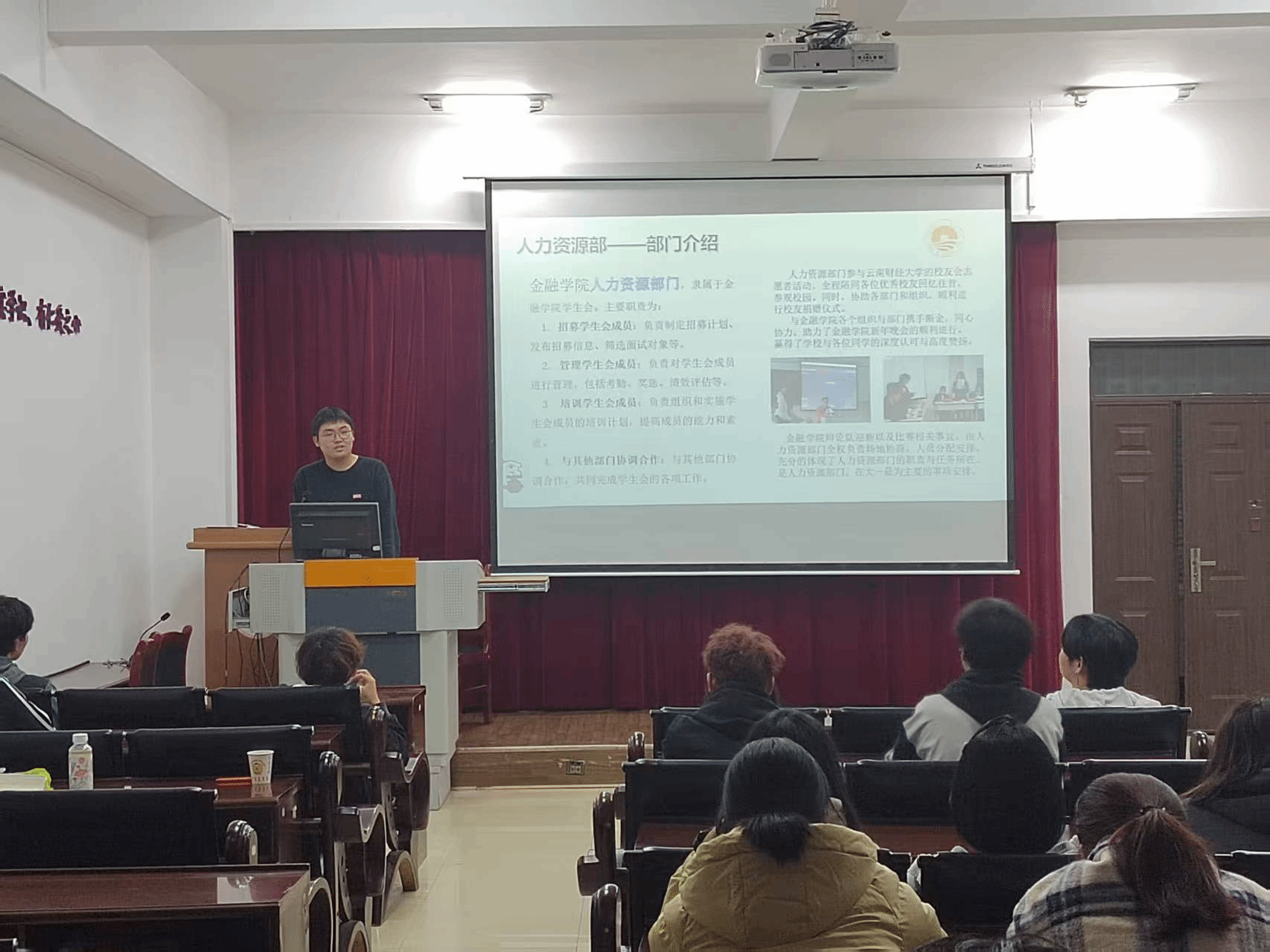 为了帮助学生会新成员快速熟悉工作流程与职责,增强责任意识与团队凝聚力,规范工作开展标准,提升整体工作效率,金融学院学生会秋季培训会于2025年11月5日在博远楼103教室成功召开。
