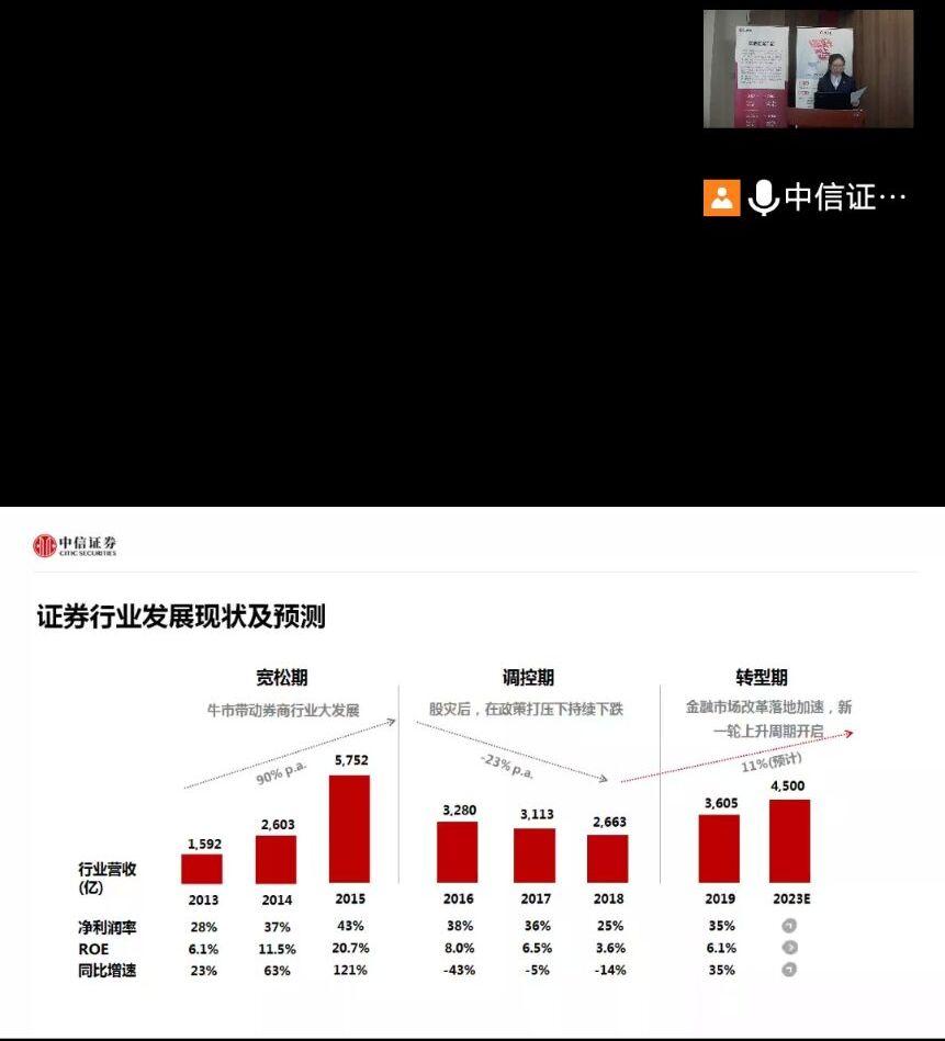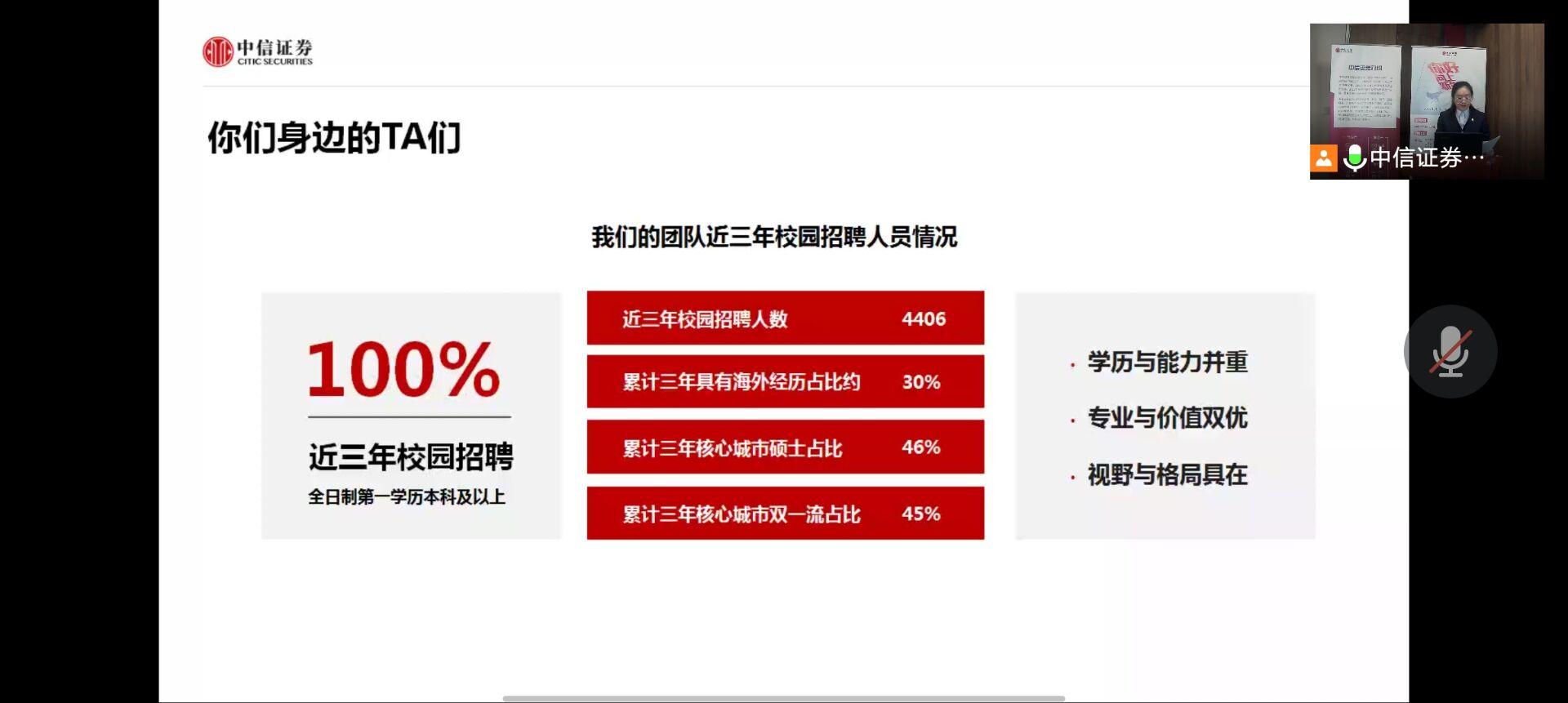 在疫情防控常态化管理期间,为持续加强就业帮扶工作,让学生更好地了解证券公司市场情况,进行职业生涯定位,金融学院邀请中信证券云南分公司开展招聘宣讲会。本次会议于2022年3月17日13:30通过腾讯会议在线上开展。