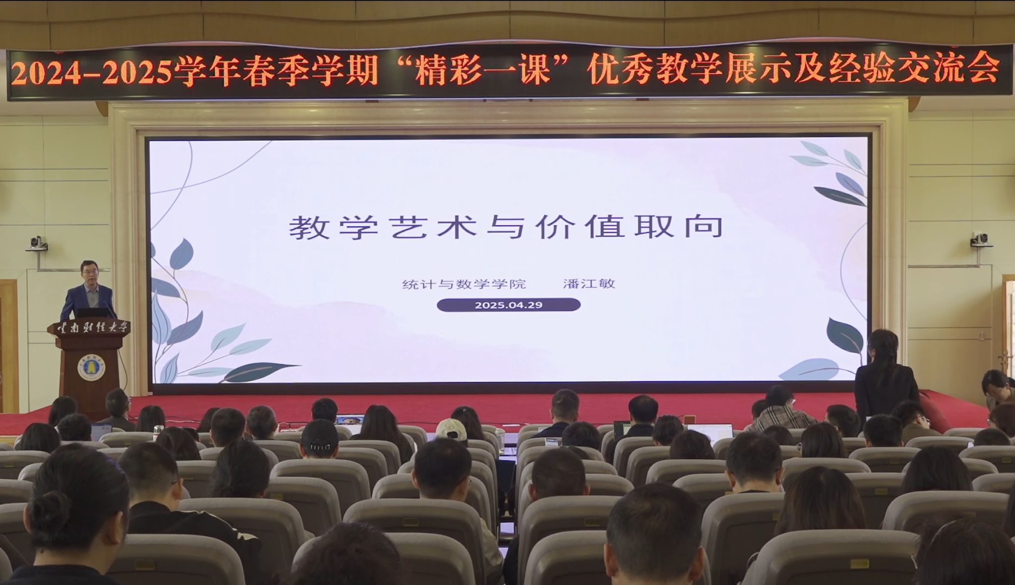429日,学校2024—2025学年春季学期精彩一课优秀教学展示及经验交流会在凌云楼国际学术报告厅盛大举行。本次会议旨在搭建一个多元开放的教学交流平台,让不同学科、不同教学风格的教师们能够相互切磋、取长补短。会议分为两个阶段,第一阶段是优秀教学展示,邀请马克思主义学院李春梅、金融学院刘纭彤、传媒与设计艺术学院雷成、经济学院彭敏娇四名青年教师进行教学展示交流;第二个阶段特别邀请统计与数学学院潘江敏教授进行教学技能传授与经验分享。各学院分管教学的副院长、教学科长、基层教学组织(含系、教研室)负责人、近三年来新进教师积极参会。此外,教务处、教师教学发展中心、教学质量监控与评估中心(课程评价中心)、实验室与实验教学管理中心相关人员也一同参与活动。为扩大会议影响力,让更多教师受益,会议采取线上线下同步模式开展,约有225名教师通过雨课堂班级观看会议直播。会议由教务处处长卢启程主持。