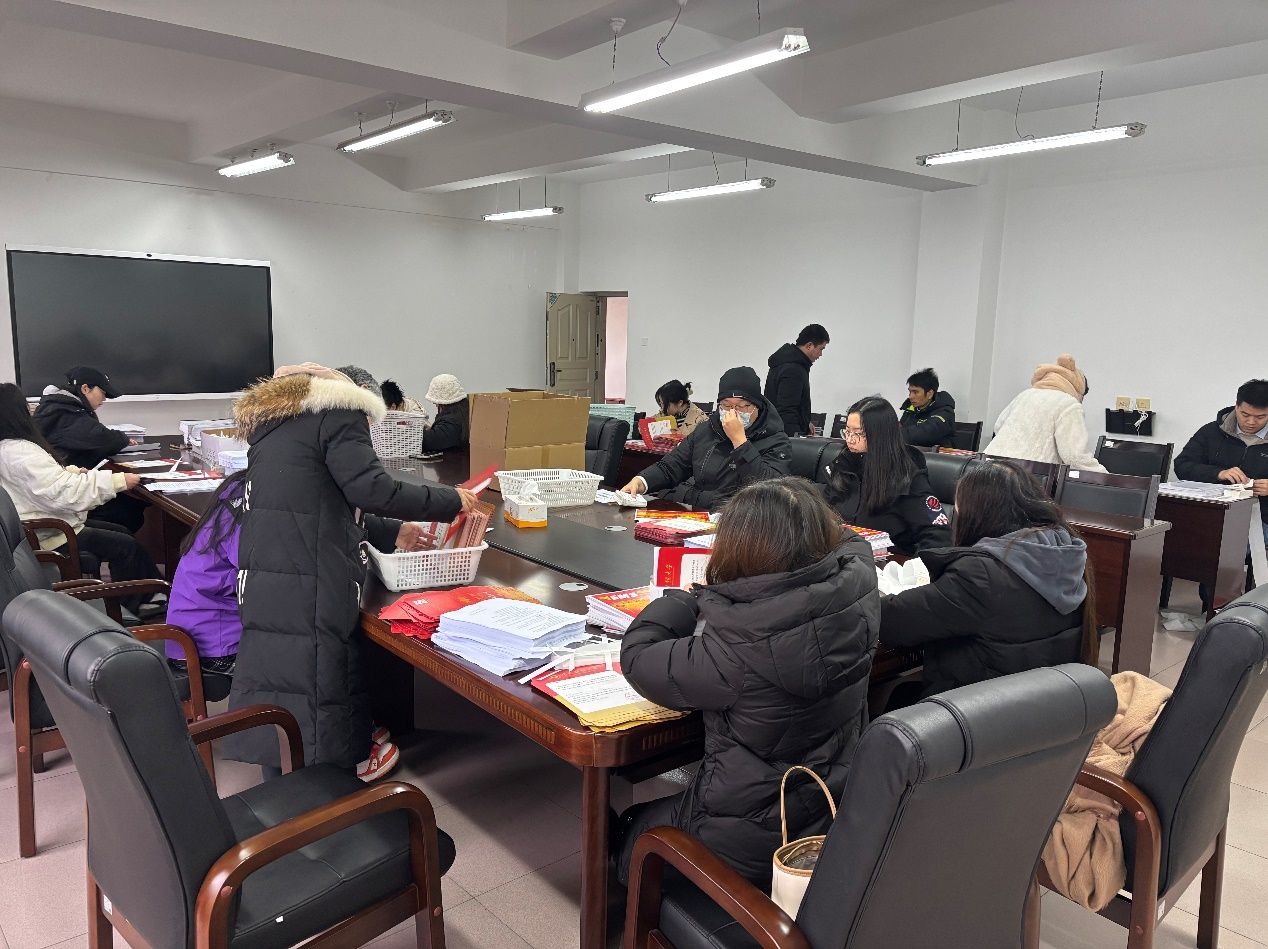 2026年1月8日上午,继续教育学院组织了本次录取通知书的集中封装工作。学院教师与来自8个教学点的20余位老师齐聚一堂,共同为3000余名已录取新生仔细核对、封装每一份录取通知书及入学须知。现场工作紧张有序,氛围严谨而热烈。