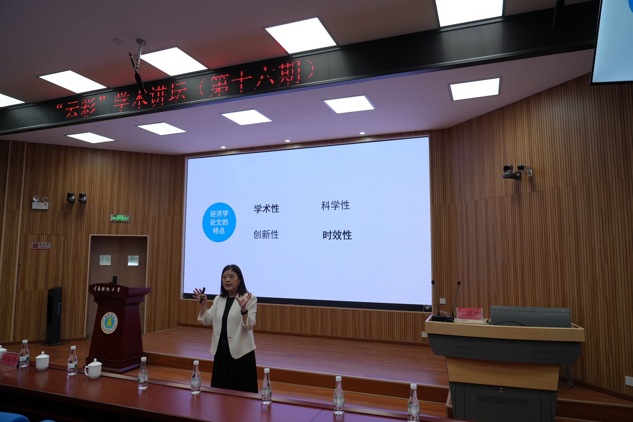 4月29日上午,学校举办“云彩”学术讲坛第十六期,邀请西南大学经济管理学院副教授、《西南大学学报(社会科学版)》编辑江娟丽作为主讲嘉宾,主题为“编辑视角的经济管理类论文写作”。讲座由经济学院副院长江淑斌教授主持,学校100余名师生参加了学术讲坛。