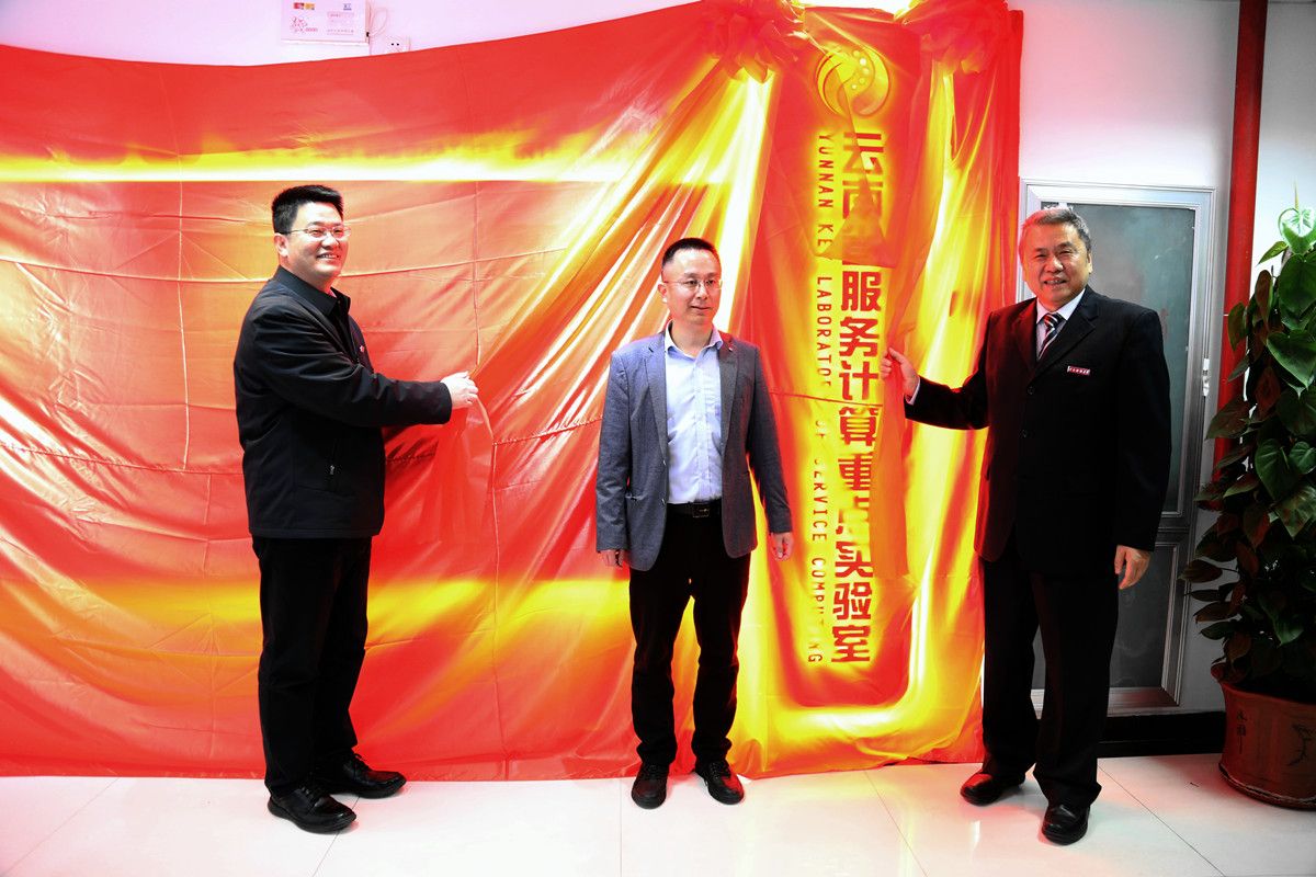 1月30日,云南省服务计算重点实验室在william威廉中文官网信息中心大楼举行揭牌仪式暨实验室建设专家咨询会。william威廉中文官网党委副书记、校长王敏教授代表学校致辞并与校党委委员、副校长李正彪教授,重点实验室主任姜茸教授一起为重点实验室揭牌。