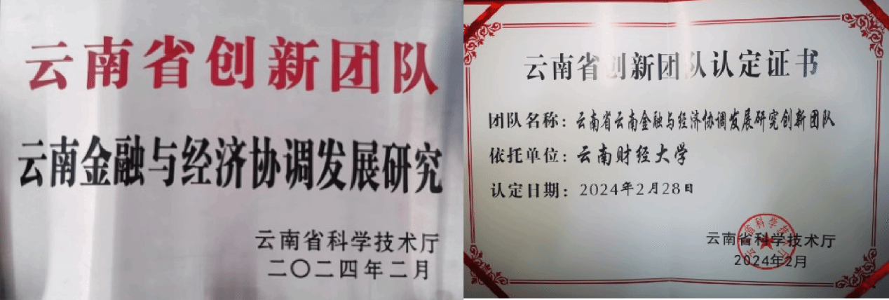 云南省云南金融与经济协调发展研究团队是以学校作为依托单位,以金融学院,经济学院及其相关学院和学科专业为基础,以引进人才为骨干,于2018年组织申报获批立项建设的云南省“兴滇英才支持计划”高层次创新团队。团队围绕“云南普惠金融发展与乡村振兴(方向负责人熊德平教授);金融经济周期与云南经济转型升级(方向负责人陈昆亭教授);国际油价冲击与云南资源产业风险管理(方向负责人魏宇教授);一带一路与云南金融开放(方向负责人杨荣海教授)”四个重点方向,集聚研究团队,凝炼特色优势,产生一批在国内外具有学术影响的系列化高端研究成果,以及国家和部省级人才与学科平台,在推动云南金融与经济协调发展中,有力支持了学校学科专业和师资队伍建设!