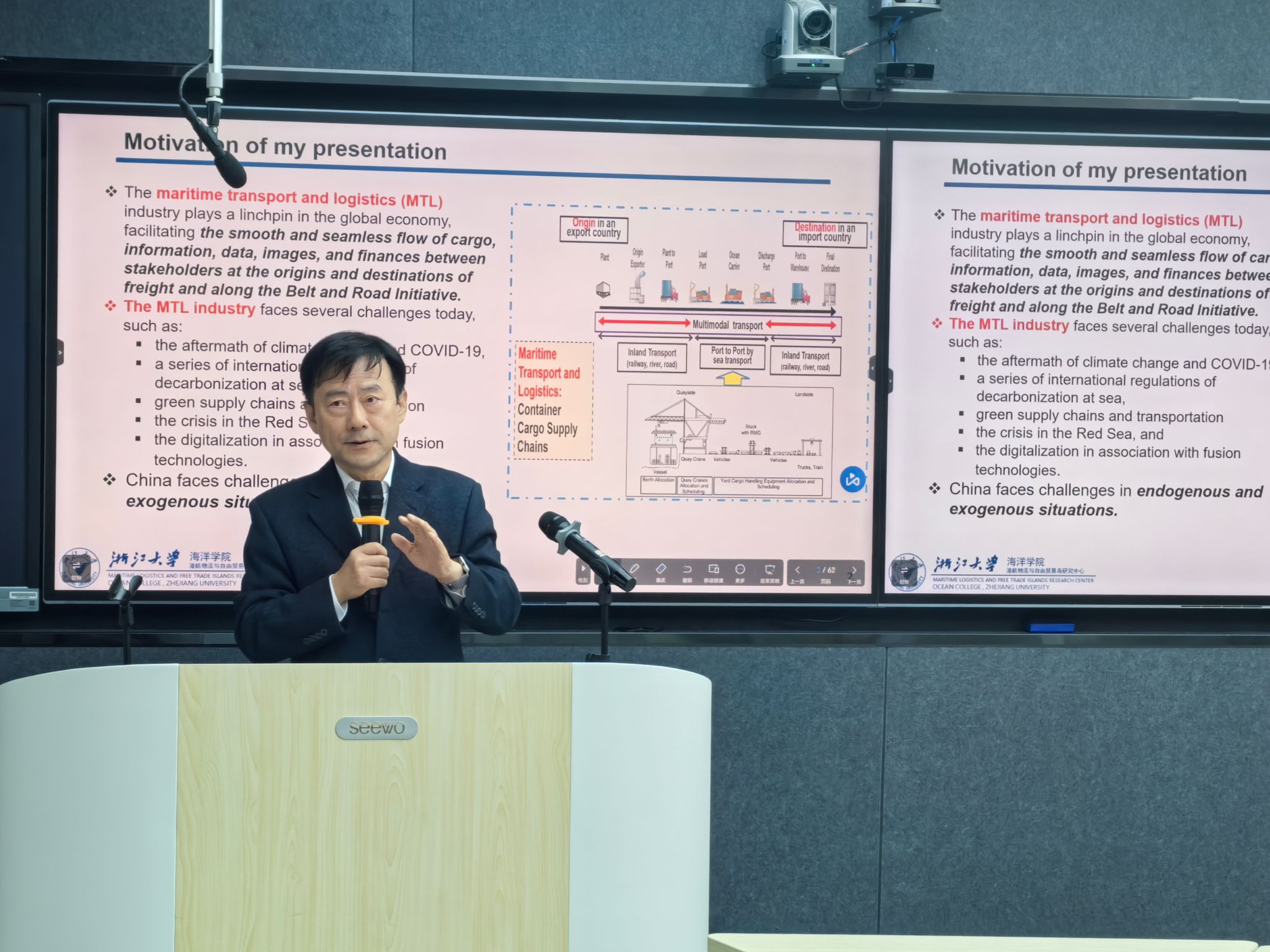2024年12月16日,“云彩”学术讲坛第八期在凌云楼南201智慧教室举行。浙江大学李太雨教授以“Exploring network development of ‘green and smart corridors’ along the Belt and Road”为题,介绍了海运和物流(MTL)行业在全球经济中扮演着关键角色,就如何促进货物、信息、数据、图像和金融资源在货运起点和终点的利益相关者之间的顺畅无缝流动展开了分享,全校80余名师生参加了此次交流。
