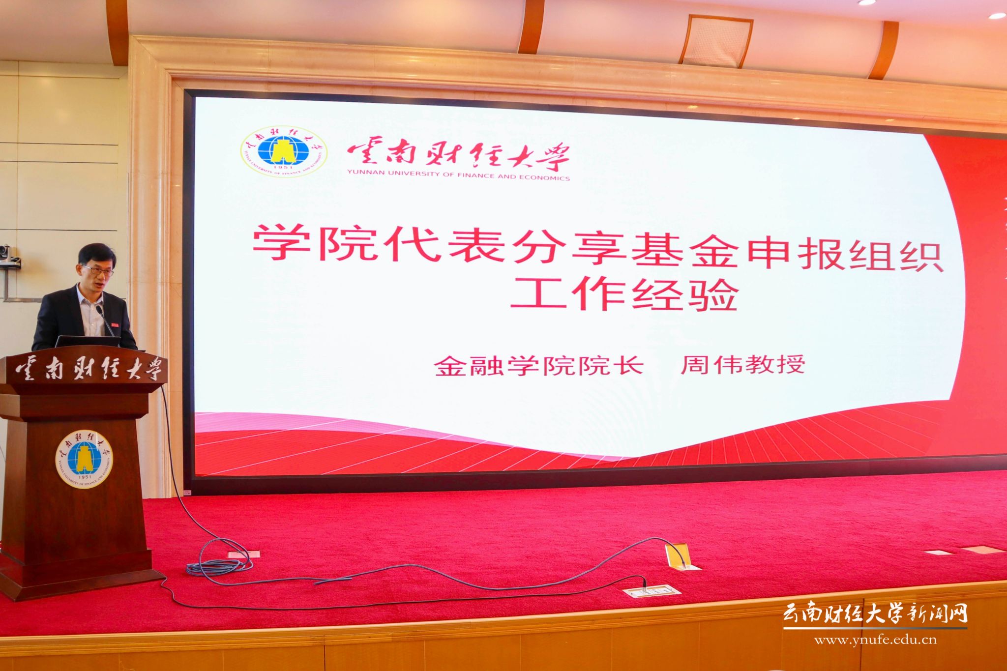 科学技术处处长段云龙汇报了2024年度学校工作总结,金融学院院长周伟、财政与公共管理学院院长缪小林作为学院代表分享基金申报组织工作经验,期刊中心方铸、商学院王静和钟昊男、印度洋地区研究中心李致斐作为教师代表分享了基金申报经验和科研工作经验。
