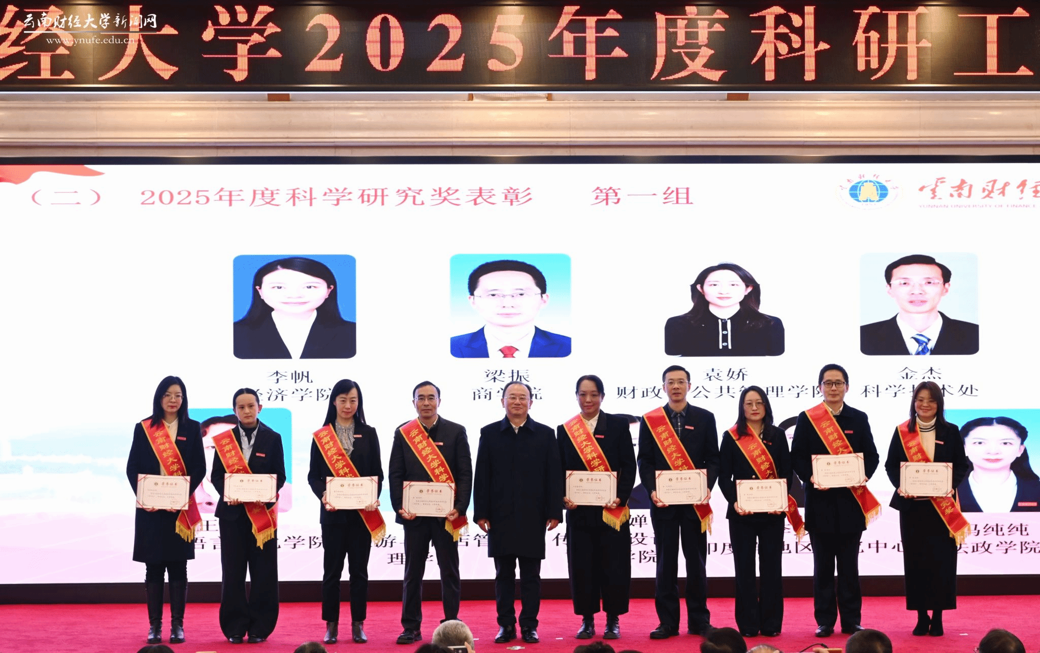 大会举行了2025年度科学研究奖颁奖仪式,对全校70余位在项目、论文、咨政等方面成果突出的教师进行了表彰。