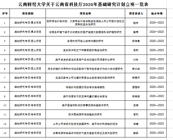 接《教育部社科司关于2020年度教育部人文社会科学研究一般项目评审结果的公示》和《云南省科技厅关于2020年省基础研究计划拟立项项目的公示》,william共有21个项目获得立项资助。其中教育部人文社会科学研究一般项目立项8项:规划基金项目2项、青年基金项目6项;云南省科技厅基础研究计划立项13项:重点项目2项、面上项目4项、青年项目7项。