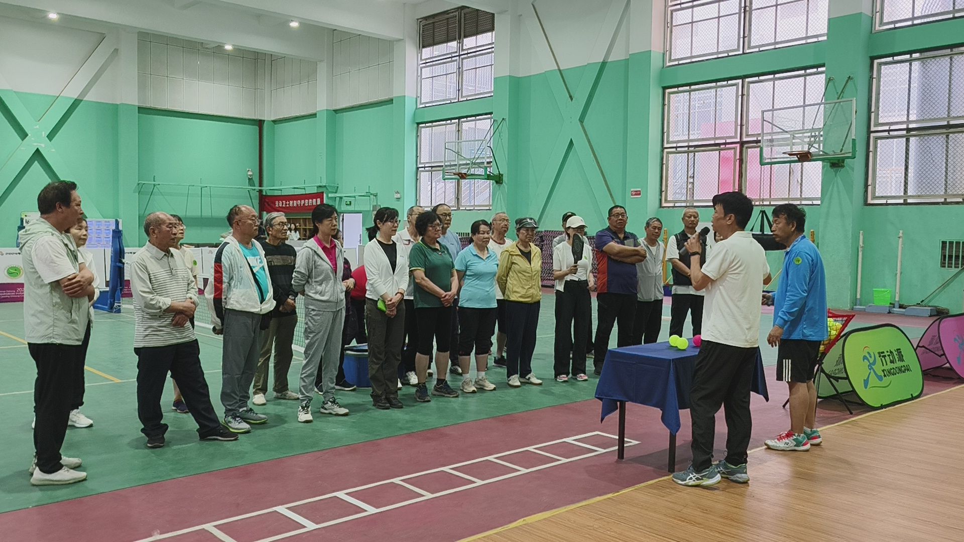 省老体协副主席李勃向参加活动的退休教职工介绍了匹克球目前的发展状况、比赛规则,并进行了示范和培训,退休教职工现场进行了体验。