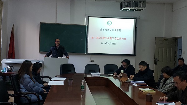2020年1月13日下午,旅游与酒店管理学院召开一届5次教代会暨工会会员大会,学院全体教职工参加大会,大会由副院长谢洪忠主持。