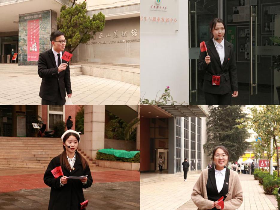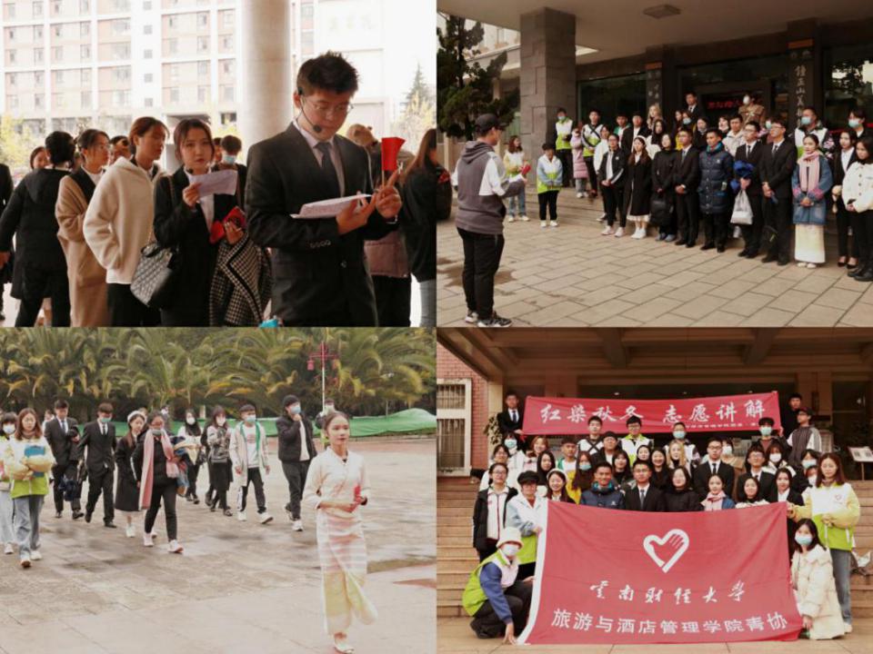 冷风瑟瑟,拂过脸颊,志愿讲解,红染秋冬。在进行了激烈的初赛比拼后,旅游与酒店管理学院青年志愿者协会于2020年12月4日下午14:00―17:00举办了“红染秋冬,志愿讲解”导游大赛——决赛。初赛晋级的14名选手以导游身份在财大校园内进行实地带团讲解,讲解地点包括北院的创新创业孵化园、体育文化中心和南院的校史馆、少数民族财会博物馆、钟正山美术馆。